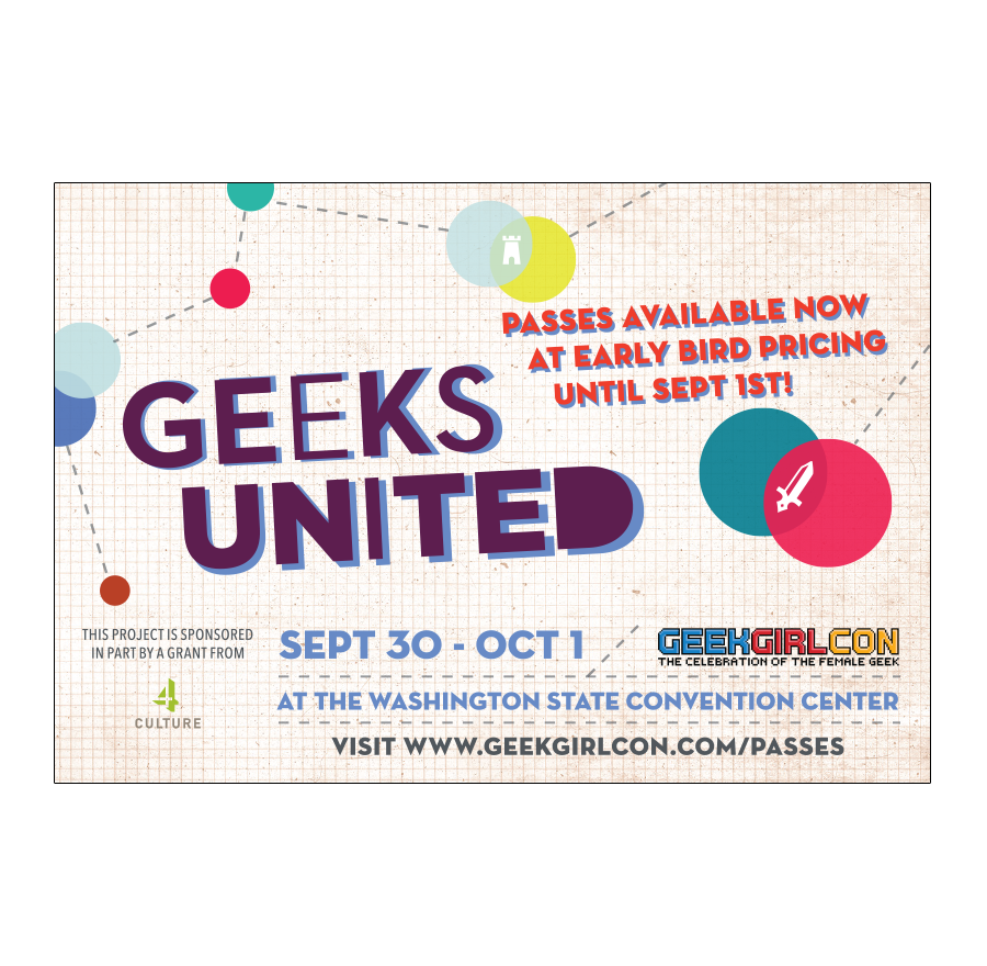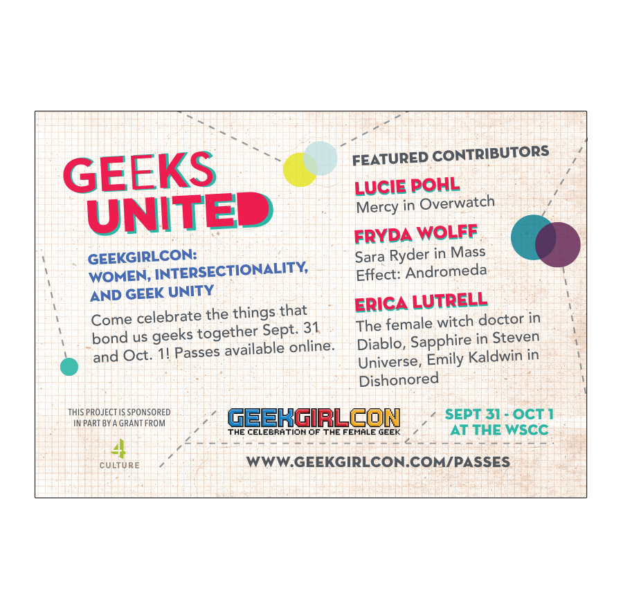 I am part of the GeekGirlCon design team who helped apply new branding standards to the organization's 5th Anniversary convention. I handled these visuals in print, web, and merchandise. I created an icon series that echoed the 2015 tagline, "There is no one way to be a Geek."