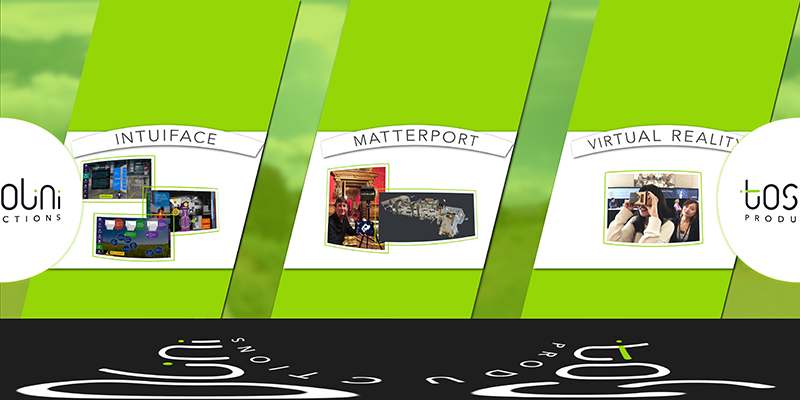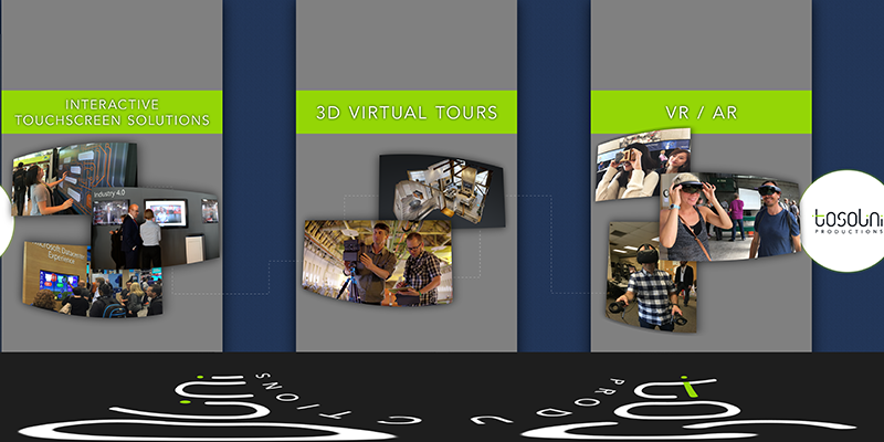 360 graphics can also be a great way to immerse a viewer into the work a company has done, especially if that work coincides with emerging media like 360 graphics and VR. Using content from past Tosolini projects, I created a 360 space in which to display the company’s work.