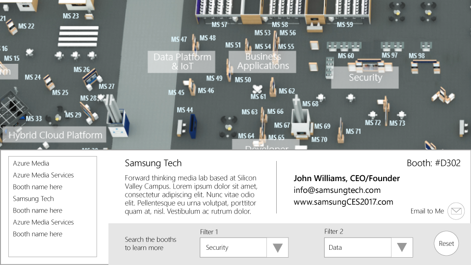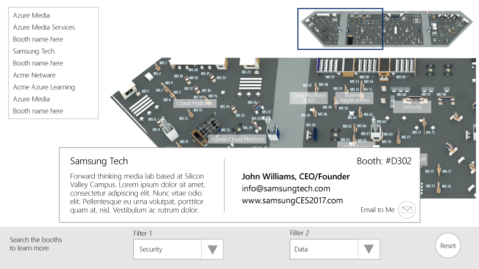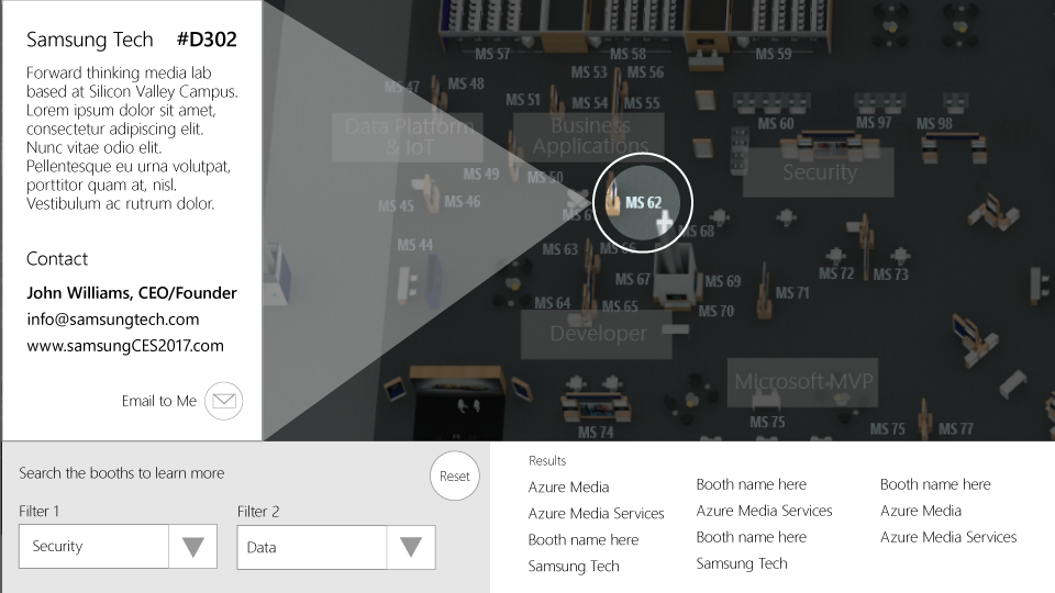 Tosolini Productions was approached by Microsoft to develop a proof of concept interactive map for event spaces.